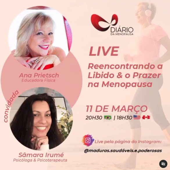 A live foi uma delícia, como muitas perguntas e participações! Compartilhei com vocês o que vivencio em minha prática no consultório no atendimento com casais e mulheres na menopausa, num bate papo aberto e sem tabus sobre o tema, pois acredito que precisamos falar sobre a sexualidade para te ajudar a transformar a tua qualidade de vida!